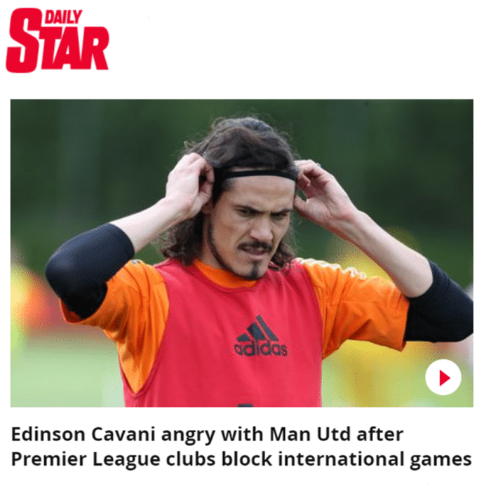 每日星报:卡瓦尼对曼联的决定感到愤怒