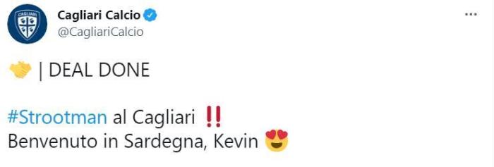 官方: 卡利亚里租借荷兰中场斯特鲁特曼