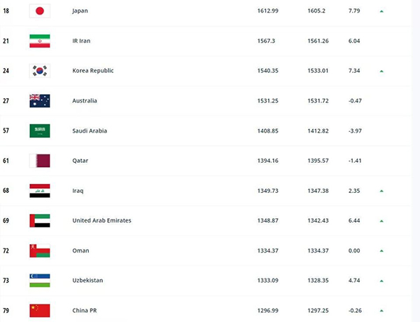 FIFA最新排名:国足上升1位至79位!阿根廷仍居第1,日本进前18名