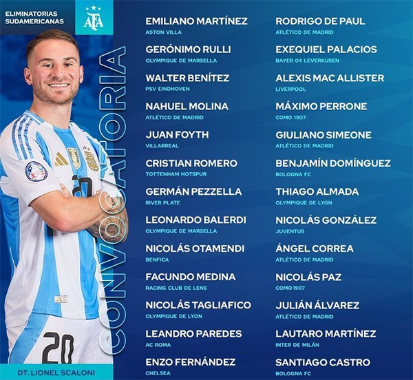 从公布的26人名单来看,阿根廷队在门将位置上,拥有来自阿斯顿维拉的马丁内斯、马赛的鲁利以及埃因霍温的沃尔特-贝尼特斯,经验与实力兼具,可为球队把守最后一道防线。
