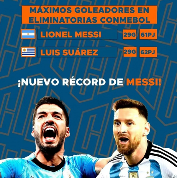 比赛结束之后,梅西谈到自己的里程碑时刻,与苏亚雷斯并列历史第一,梅西的回应很暖心,称:“很荣幸和苏亚雷斯一起并列南美最佳射手的行列。”