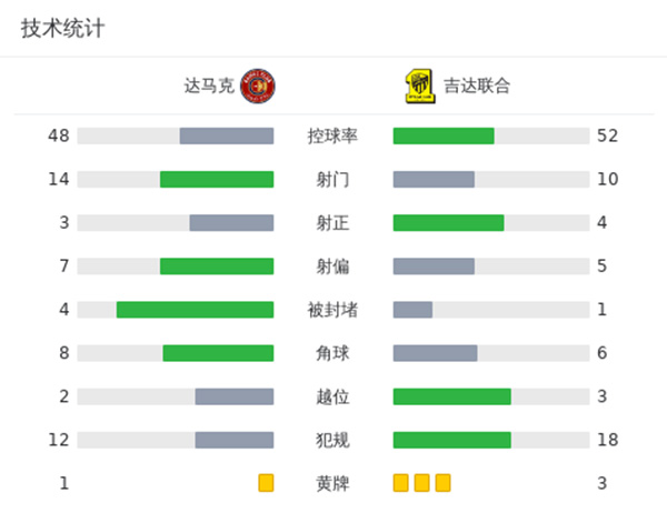 吉达联合1-3达马克 本泽马缺阵联合遭近4轮首败