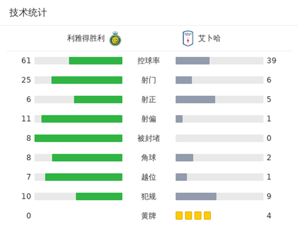 利雅得胜利2-2艾卜哈 各赛事10连胜遭终结