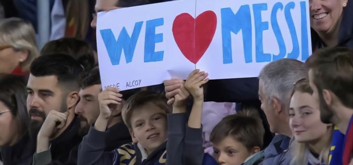 连续2场!巴萨近10万球迷第10分钟齐呼梅西,小球迷举标语:快回家吧