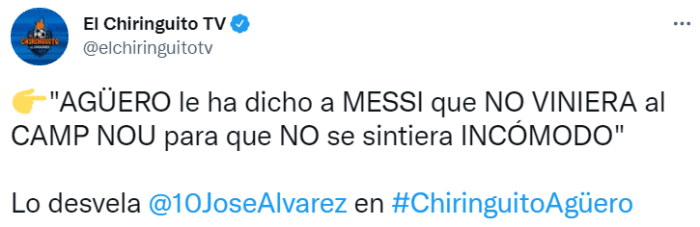 六台表示,阿圭罗让好友梅西不要到诺坎普来参加自己的退役新闻发布会,这样他就不会感到太难受。