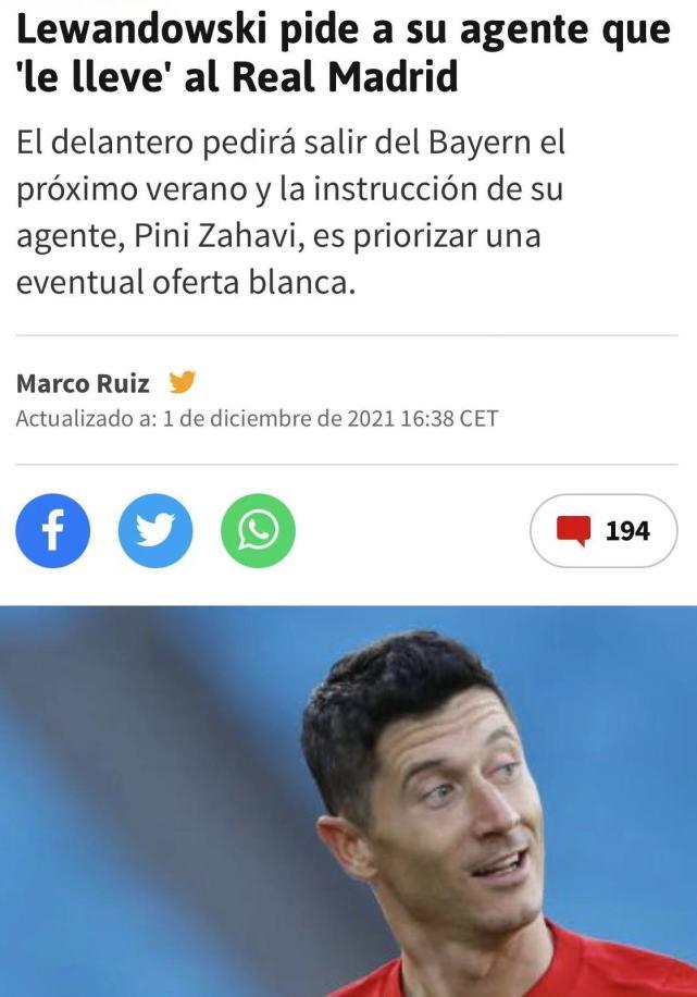 金球输梅西后,曝莱万要求经纪人考虑皇马报价:登陆西甲能帮我拿奖