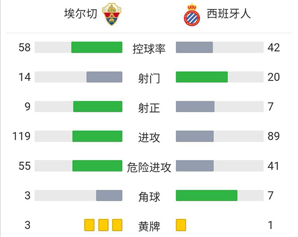 全场比赛结束,最终埃尔切2-2西班牙人。