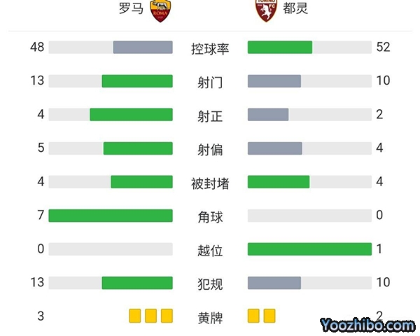 全场比赛结束,最终罗马1-1战平都灵,遭遇三轮不胜。