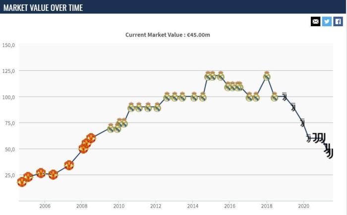 德转C罗身价: 由5000万欧下跌至4500万欧