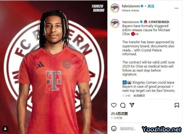 来源:24直播网06-27 18:4424直播网讯 据意大利知名记者罗马诺报道,拜仁已正式启动奥利塞4500万英镑的解约条款。随后将进行体检和签约。合同签至2029年6月。