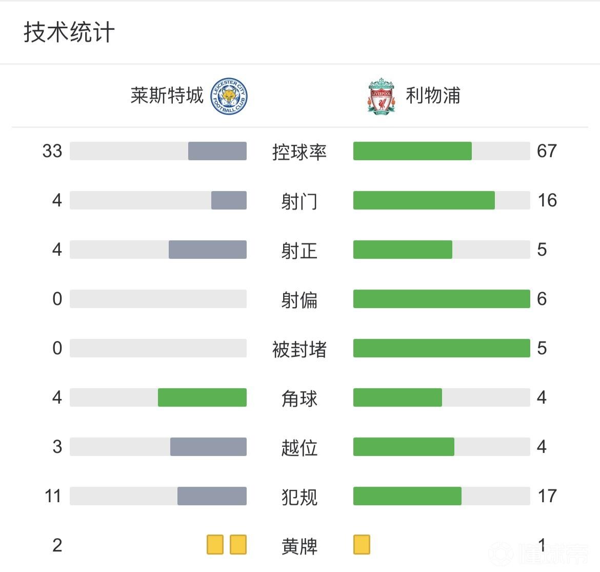 最终利物浦客场3-0完胜莱斯特,红军豪取联赛7连胜。