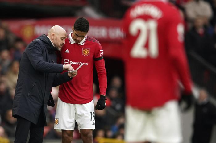 滕哈格在曼联与布莱顿的英超赛前发布会上表示:「按照诊断,拉斐尔(瓦拉内)现在比麦克托米内更接近复出,但在接下来的两场比赛中,他们仍然无法上场。「」