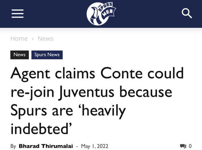 相关人士:热刺负债累累,孔蒂可以考虑离开了