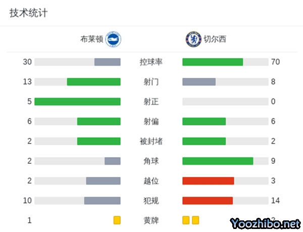 切尔西0射正0-3布莱顿近3轮2负 三笘薰神级停球+破门