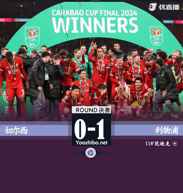 24直播网讯 北京时间2月25日23:00,英格兰联赛杯决赛,切尔西对阵利物浦。上半场赫拉芬贝赫伤退,被担架抬出场外,斯特林破门,但为他传球的杰克逊越位在先,这球被吹掉,加克波头球中柱,切尔西暂0-0利物浦;下半场范迪克头球破门,VAR介入,主裁判观看大屏幕后认定远藤航越位位置干扰防守球员回防,进球无效,加拉格尔失单刀,90分钟战罢,两队暂0-0战平,比赛进入加时。加时赛下半场范迪克绝杀,最终利物浦1-0切尔西,收获队史第10座联赛杯冠军奖杯,领先8次夺冠的曼城和6次夺冠的曼联。