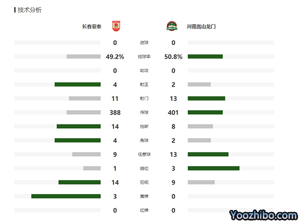 全场比赛结束,长春亚泰0-0河南嵩山龙门。