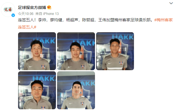 来源:24直播网03-22 20:3424直播网03月22日讯 今天,升班马梅州客家一口气宣布了5名新援,签下李帅、廖均健、杨超声、陈哲超和王伟。