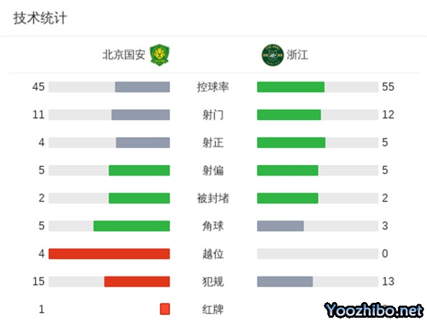 最终,北京国安主场0-0战平浙江队遭遇联赛两连平。