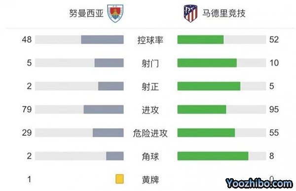 第51分钟,库尼亚接队友角球头球破门。马竞4-0努曼西亚!