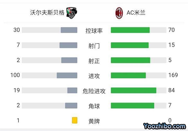 全场比赛结束,米兰5-0沃尔夫斯贝格。