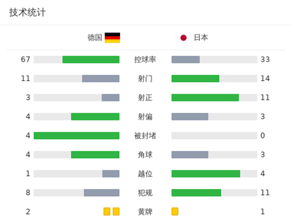 第11分钟,菅原由势强吃施洛特贝克后传中,伊东纯也面对吕迪格防守,前点抢射得手,德国0-1日本!