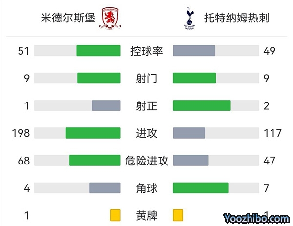 全场比赛结束,米德尔斯堡1-0热刺。