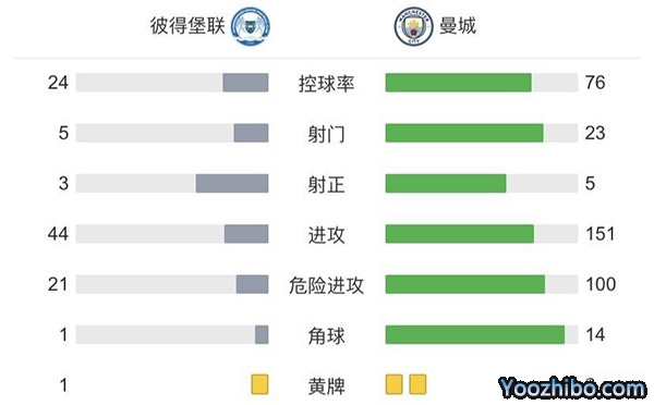 全场比赛结束,曼城2-0彼得堡联。
